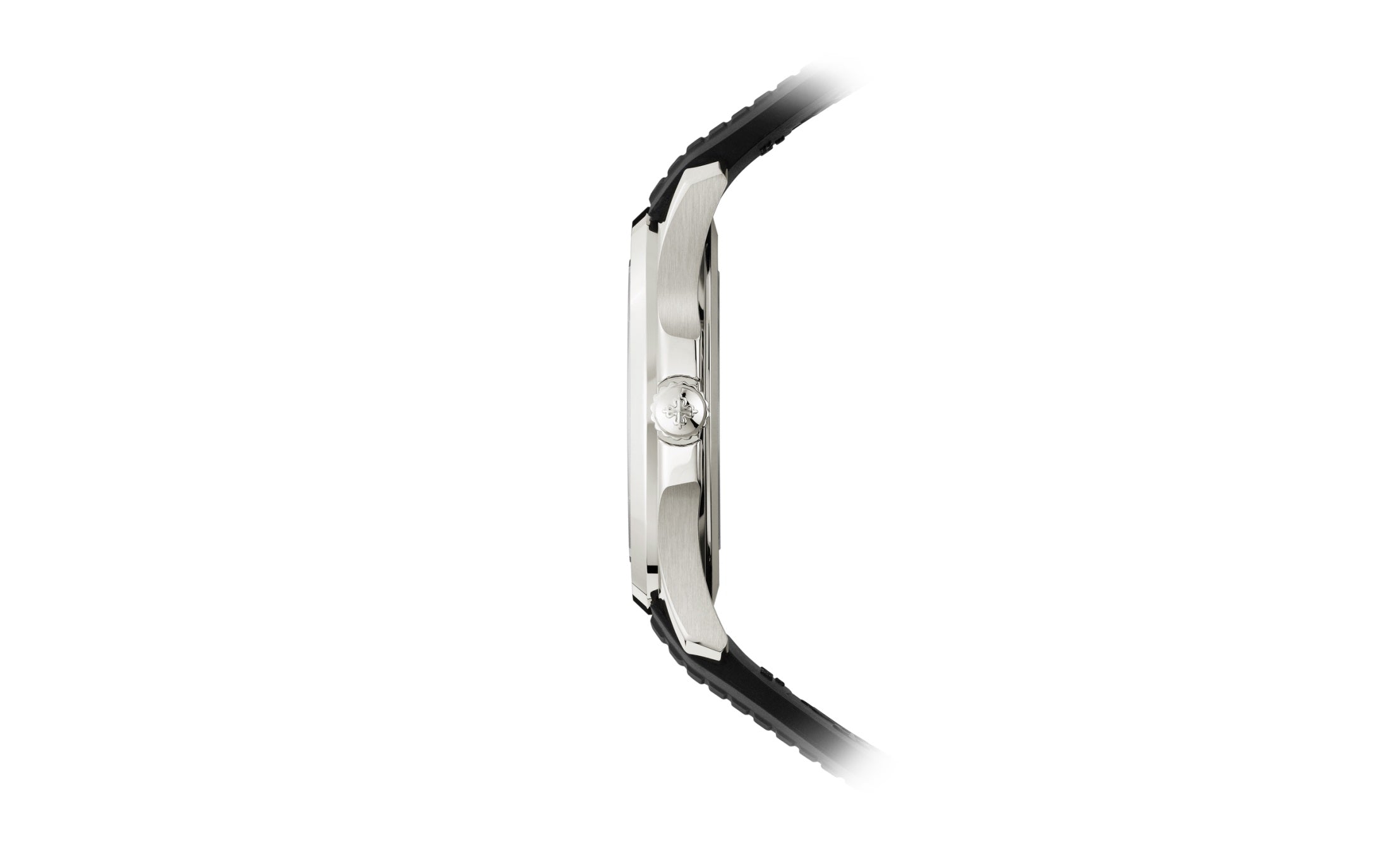 New Patek Philippe Aquanaut Luxury Sports Watch, Date Sweep Seconds, 40,8mm, Stainless Steel, Ref. 5167A-001 – reliable and practical, modern and somewhat unexpected, inspired by Nautilus. Their Stainless Steel case features a rounded octagon that is unmistakable. A beautiful black embossed dial looks harmoniously with perfectly readable large applied 18k White Gold Arabic numerals with luminescent coating. Around the outer rim, there are large silver minute markers with fairly wide, luminous every 5 minutes. The time is shown by large stick-shaped hour and minute hands made of 18k White Gold with luminescent coating, as well as a thin and elegant second hand (Sweep Seconds). Date indicator in an aperture traditionally located at the 3 o’clock position. A polished Stainless Steel screw-down crown with a ribbed edge for a comfortable grip and the Patek Philippe logo create a naturally balanced watch. The dial closed by a Scratch-resistant Sapphire Crystal. Sapphire-crystal too case back, which allows of the case, allows you to see the magical work of the movement. Against this backdrop, the fixed Stainless Steel bezel stands out, from satin on the front and polished on the sides, provides a wide view of the dial. The Model has Patek Philippe Caliber 26‑330 S C, with a self-winding mechanical movement containing 30 Jewels, with a power reserve of min. 35 hours – max. 45 hours. This beautiful sporty-chic watch is presented on a black tropical rubber strap made from a new composite material that is ultra-resistant to wear, salt water and UV radiation. It fastens with Patek Philippe’s patented stainless steel Aquanaut folding clasp, which has a polished surface and is engraved with the Calatrava Cross. Opening the clasp reveals an engraved Patek Philippe logo with the word GENEVE. Water resistant up to 120m/394ft (12 ATM).